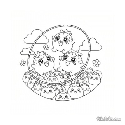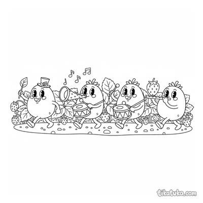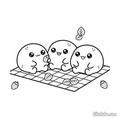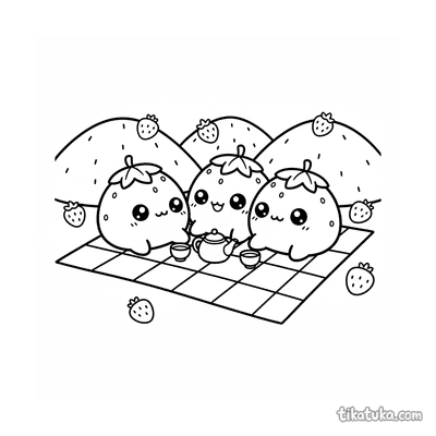 Esta coleção reúne desenhos de morango em diversas situações divertidas. Os morangos aparecem em cenas de piquenique, como instrumentos musicais ou acompanhados por adoráveis mochis. Cada ilustração apresenta contornos claros em preto e branco, ideais para colorir.