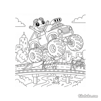 Monster Truck Pulando Rampa na Ponte