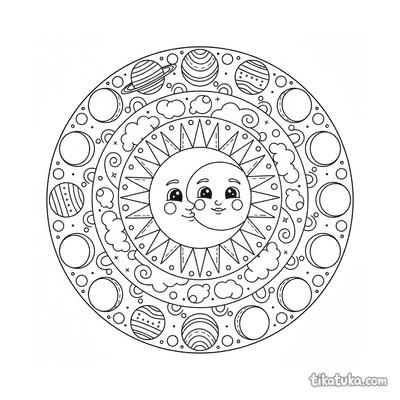 Desenhos de mandala celestial para colorir grátis | tikatuka.com