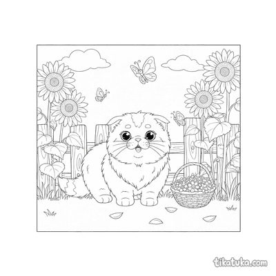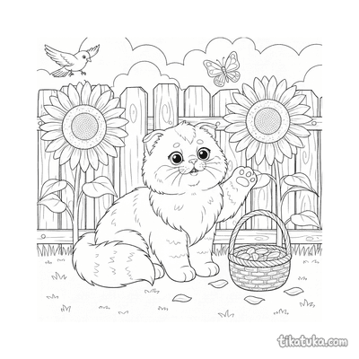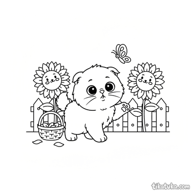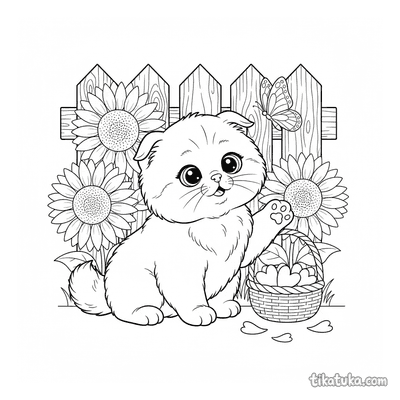 As páginas incluem campos de girassóis gigantes, gatinhos brincando entre as flores e até um zumbi jardineiro amigável. Cenas com borboletas, colmeias e diferentes raças de gatos oferecem variedade para as crianças explorarem. Você pode baixar e imprimir todos os 22 desenhos gratuitamente. As ilustrações em preto e branco têm contornos bem definidos, ideais para colorir com lápis, giz de cera ou canetinhas.