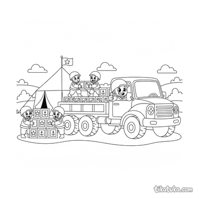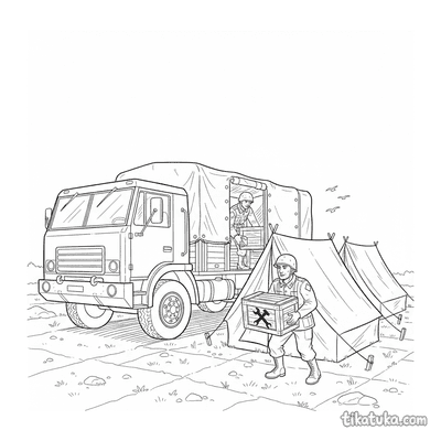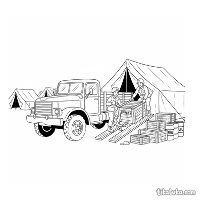 Caminhão de Suprimentos Descarregando no Quartel-General