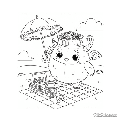 Monstro Flutuante com Guarda-chuva Carregando Torta