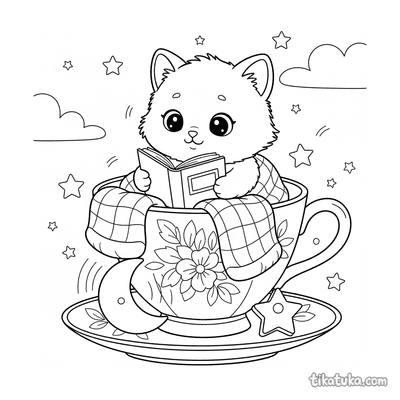 Aqui você encontra xícaras de chá que ganham vida, servindo de casa para monstros minúsculos, local de leitura para gatinhos ou até mesmo personagens que marcham. Há também cenas com copos de boba equilibrando pérolas e um hamster sonolento descansando em uma xícara. Todos os 14 desenhos têm contornos nítidos em preto e branco, perfeitos para serem preenchidos com lápis de cor ou canetinhas. É fácil baixar várias páginas de uma vez para uma tarde de diversão ou usar a ferramenta de colorir online diretamente no site.