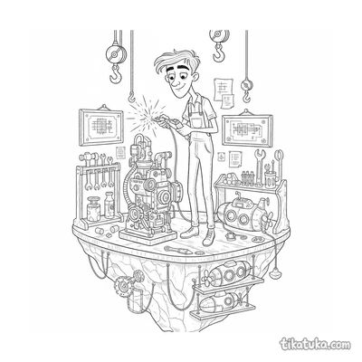 As crianças podem colorir cenas de um kucyk mecânico com sua caixa de ferramentas, um robô astronauta consertando um satélite ou uma menina construindo uma casa para pássaros. Há também personagens únicos, como um micróbio músico e um cavaleiro de relojoaria, todos envolvidos com instrumentos e engrenagens. Nossas páginas para colorir de ferramentas têm contornos nítidos em preto e branco, ideais para imprimir em casa ou colorir online. Você pode baixar e imprimir qualquer desenho individualmente ou usar a opção de impressão em lote para criar um pacote de atividades completo.