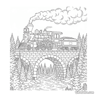 Entre os desenhos, você encontra cenas detalhadas de trens a vapor antigos em estações montanhosas ou cruzando pontes de pedra e ferro. Há também locomotivas streamliner dos anos 1930 e composições completas trafegando por paisagens variadas. Todas as ilustrações têm contornos nítidos em preto e branco, ideais para serem impressas em casa ou coloridas diretamente na tela. Você pode baixar as páginas individualmente ou imprimir várias de uma vez para criar um álbum de colorir sobre trens.