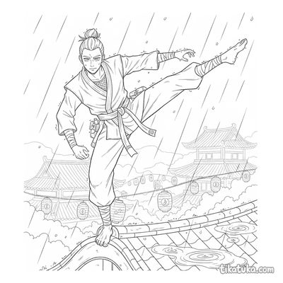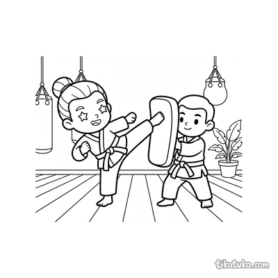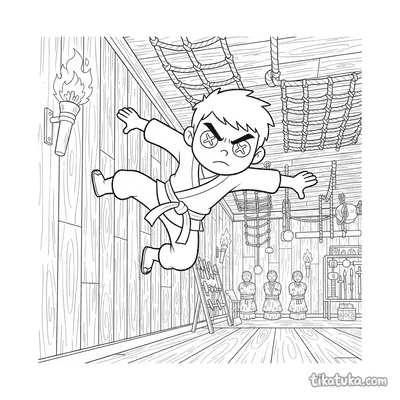 Esta coleção reúne desenhos para colorir que retratam cenas de treinamento. As páginas apresentam personagens em momentos de prática e aprendizado de habilidades.