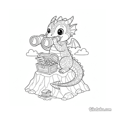 Esta coleção reúne desenhos para colorir que exploram o tema do tesouro. As páginas apresentam cenas de aventura e fantasia, todas em preto e branco, prontas para serem preenchidas com cor.