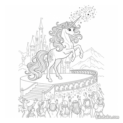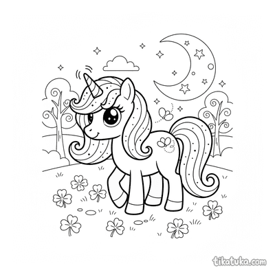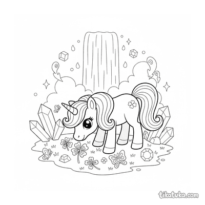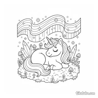 Aqui, as crianças encontrarão unicórnios em situações mágicas, como um potro a esfregar o focinho numa nuvem em forma de coração, um unicórnio com a crina desenhada como uma galáxia ou descansando numa cama de trevo. Há também cenas junto a cascatas coloridas, em praias com conchas, em carrosséis ou explorando grutas de cristal gelado. Todas as ilustrações são em preto e branco, com contornos bem definidos que facilitam o preenchimento com lápis de cor ou canetinhas. Você pode baixar e imprimir qualquer desenho individualmente ou usar a opção de impressão em lote para criar um pacote de atividades completo sobre este tema mágico.