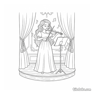 As crianças encontrarão cenas como um trio com violino, violoncelo e piano, uma raposa violinista num coreto e um dueto entre pianista e violinista. Há também meninas tocando em salões festivos, um gafanhoto violinista num palco de folha e coelhos músicos, oferecendo uma variedade de situações para colorir. Todas as ilustrações estão prontas para serem baixadas e impressas em casa, com traços limpos que facilitam o preenchimento. É uma forma prática de ter acesso a uma seleção de desenhos sobre o tema, ideais para atividades em sala de aula ou para momentos criativos em família.