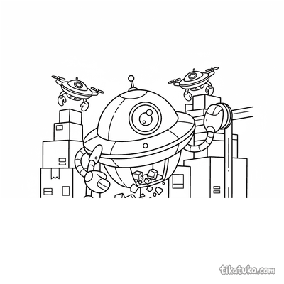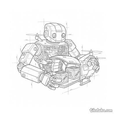 Aqui você encontra robôs inspetores, ajudantes desempacotando caixas, mecânicos de manutenção e robôs de entrega checando mapas. Também há mascotes de pelúcia organizando ferramentas, robôs zeladores limpando corredores e até cachorros robóticos em serviço. As ilustrações capturam a rotina de um armazém, com equipamentos e atividades específicas. Você pode baixar e imprimir 122 desenhos em preto e branco com traços limpos, ideais para crianças. É uma forma prática de ter várias páginas para colorir sobre o mesmo tema, perfeitas para usar em casa ou na sala de aula.