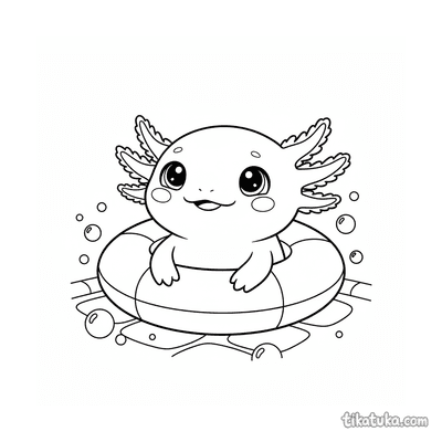 Axolotle em um Anel Inflável no Fundo da Piscina