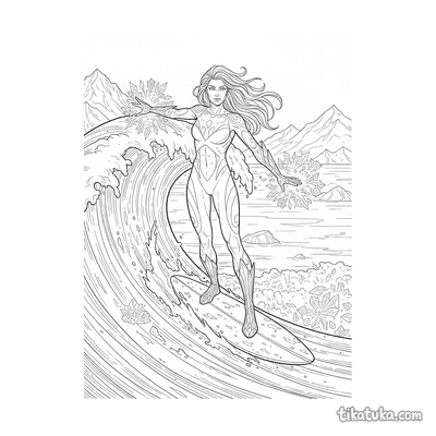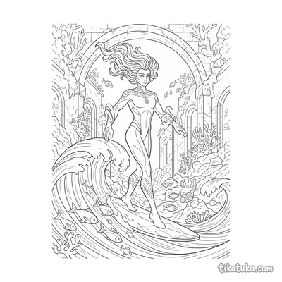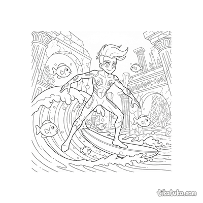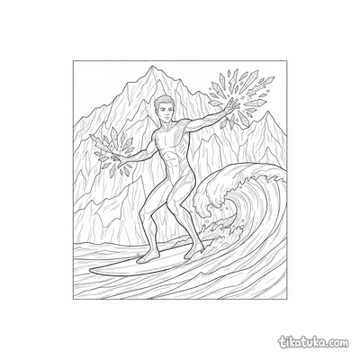 Nas páginas para colorir, o herói água aparece em cenários como o Ártico, surfando em ondas geladas ou explorando um lago congelado. Ele também vive aventuras em ruínas subaquáticas e recifes de coral, onde por vezes é acompanhado por animais marinhos como golfinhos e tartarugas. Você pode baixar e imprimir todas as ilustrações gratuitamente, em preto e branco, para ter horas de diversão. Os contornos bem definidos são ideais para colorir com lápis, canetinhas ou giz de cera, seja em casa ou na sala de aula.