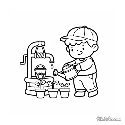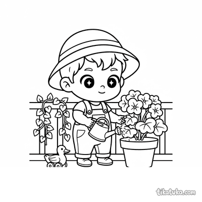 Esta coleção reúne desenhos para colorir que apresentam o regador como elemento central. As páginas mostram diversas cenas de jardinagem e cuidados com as plantas. O regador aparece em mãos de personagens variados, desde crianças até criaturas imaginárias.