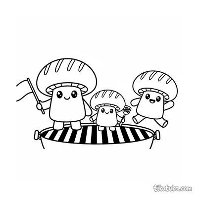 Família de cogumelos grelhados acenando