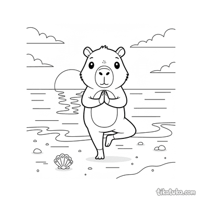Capivara Fazendo Yoga na Praia ao Pôr do Sol